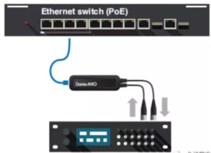 3、将兼容 AES3 的 DSP 连接到 Dante 网络